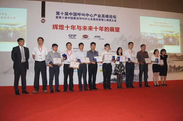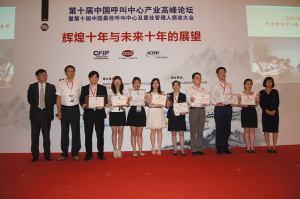 2012年6月7日,第十屆中國呼叫中心產(chǎn)業(yè)高峰論壇暨中國最佳呼叫中心及最佳管理人頒獎大會在安徽合肥舉行。在大會上,經(jīng)過組委會嚴格、科學(xué)、細致的調(diào)研及測評,廣東鴻聯(lián)九五呼叫中心憑借在外包服務(wù)模式、高效運營、客戶滿意度等方面的突破,獲得了評委會的一致肯定與高度評價,主辦方中國信息化推進聯(lián)盟客戶關(guān)系專業(yè)委員會(CCCS)在繼2006年來已第六次將 “中國最佳外包呼叫中心”大獎授予鴻聯(lián)九五客戶聯(lián)絡(luò)中心。同時,呼叫中心四位管理者也榮獲了“2011-2012年度最佳管理人系列評選獎項”。其中,廣東鴻聯(lián)九五公司副總經(jīng)理、集團呼叫中心事業(yè)部常務(wù)副總高路榮膺中國呼叫中心產(chǎn)業(yè)杰出貢獻獎,東莞電話客戶經(jīng)理項目經(jīng)理陳正濤、東莞呼入項目運營主管謝小波榮獲年度最佳管理人獎,黑龍江呼入項目組運營主管李維以卓越的表現(xiàn)博得眾多評委的好評獲得年度最佳客戶服務(wù)代表獎。
