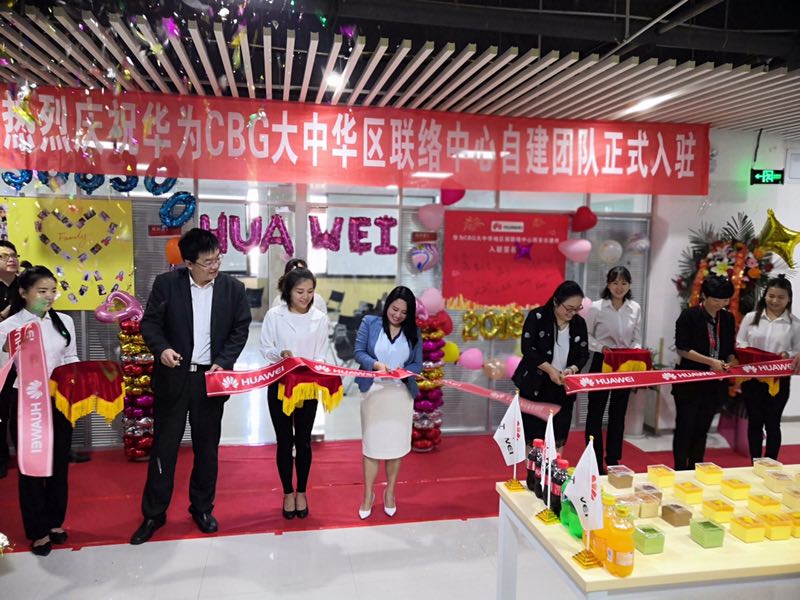 趙蕊總代表公司對華為團隊的入駐表示熱烈的歡迎,并與嘉賓進行了簡短而愉快的交流。9:30左右剪彩儀式正式開始,由趙蕊總和華為嘉賓共同剪彩,這也標志著華為CBG大中華區(qū)聯(lián)絡中心自建團隊正式入駐我司職場。