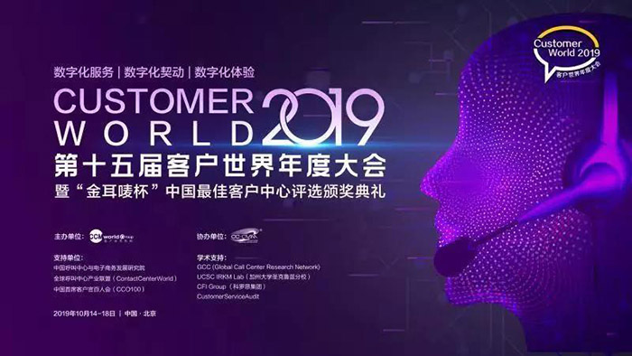 2019年10月14日至18日,由客戶世界機(jī)構(gòu)主辦,CC-CMM標(biāo)準(zhǔn)組織協(xié)辦的2019客戶世界年度大會(huì)暨第15屆“金耳嘜杯”中國(guó)最佳客戶中心評(píng)選頒獎(jiǎng)典禮在在北京-榮華天地酒店舉行。